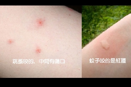 跳蚤咬人令人非常痕癢,特點是紅腫部份的中間有個洞,蚊子咬是沒有洞的。嚴重的話,跳蚤會令到你覺得身體常常被叮咬,出現皮膚敏感